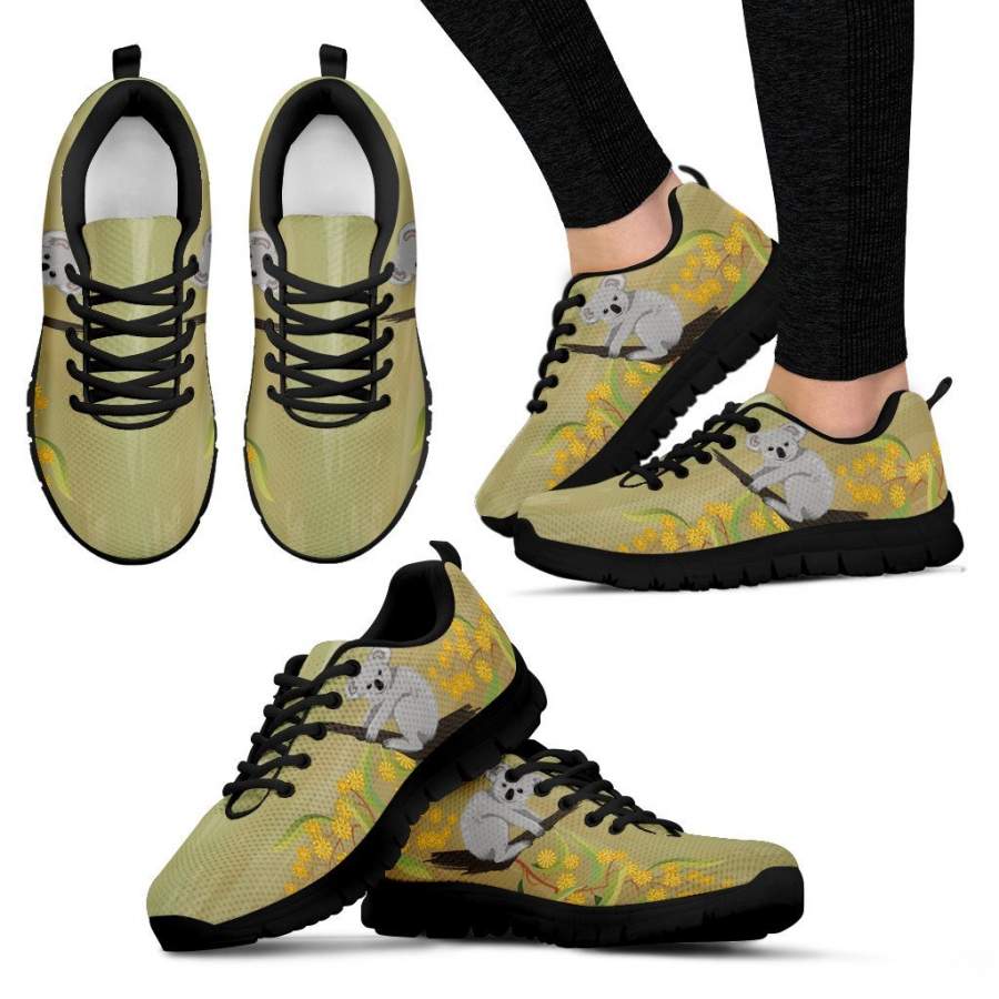 • Womens Sneakers - Black - Australia shoes- Australian koala with mimosa womens sneakers black NN8