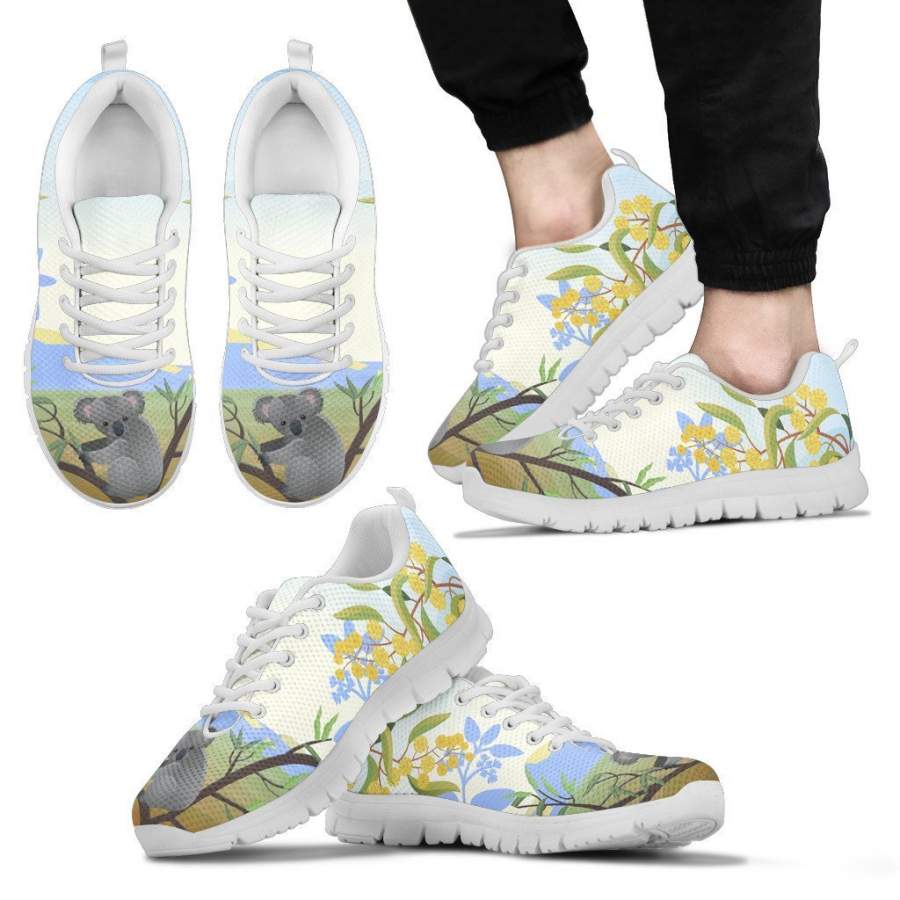 • Mens Sneakers - White - Australia shoes- Koala with mimosa flower mens sneakers white NN8